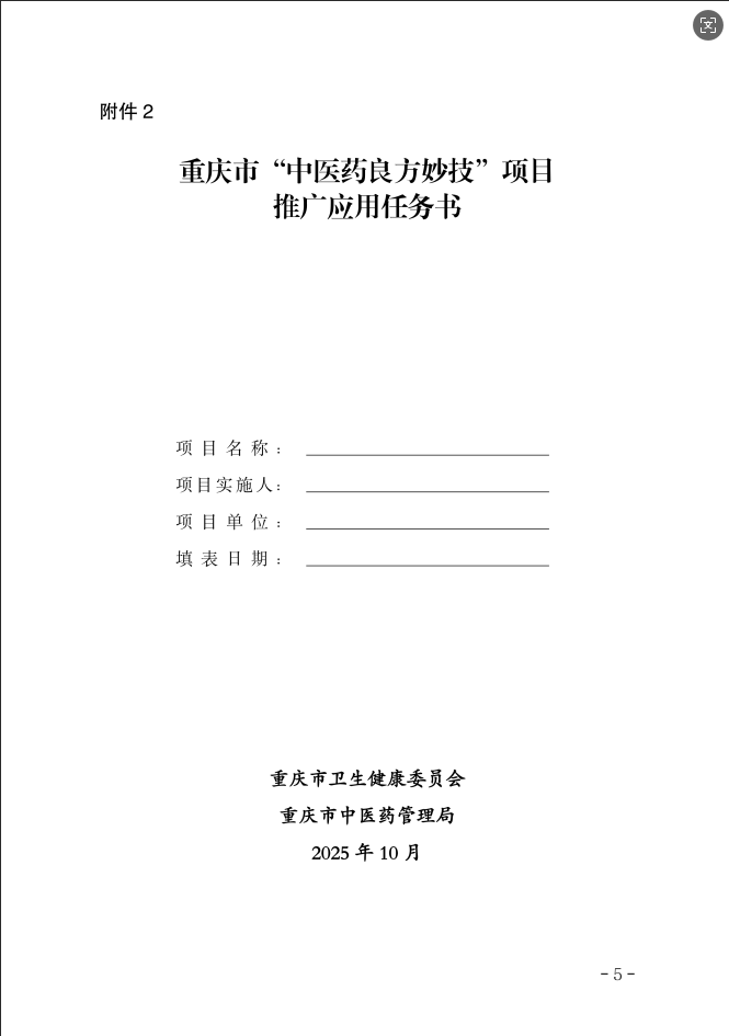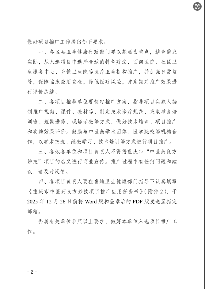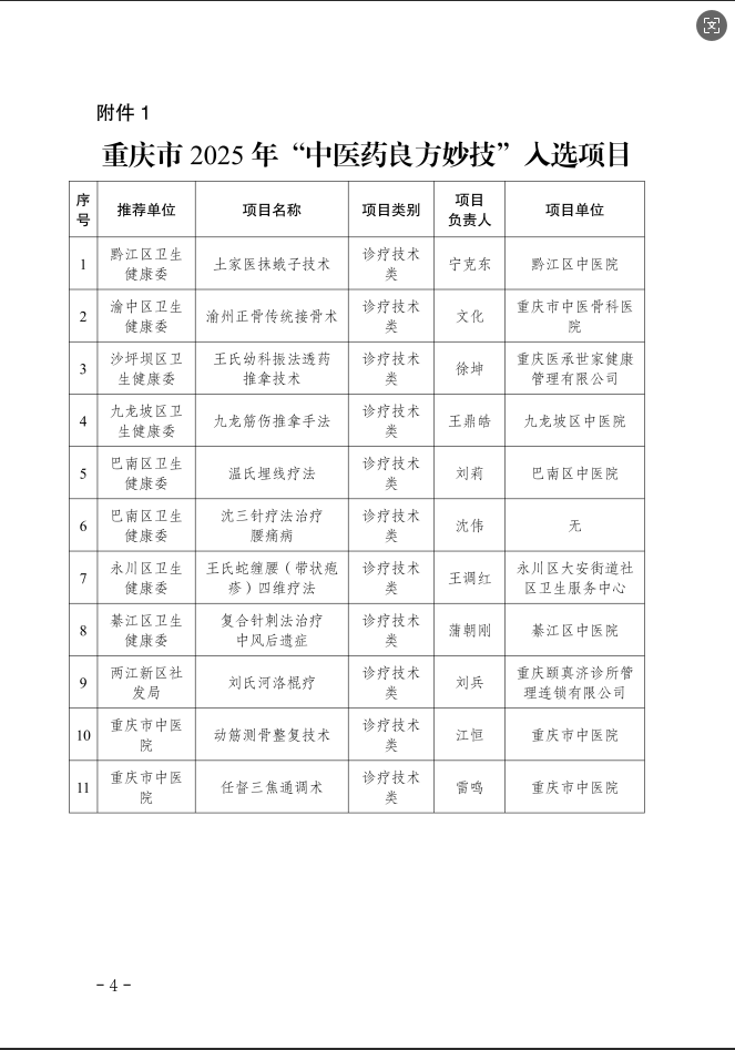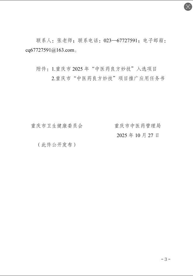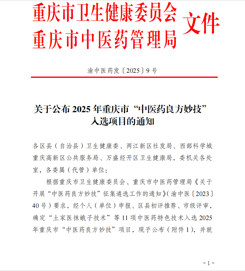 关于公布 2025 年重庆市“中医药良方妙技” 入选项目的通知